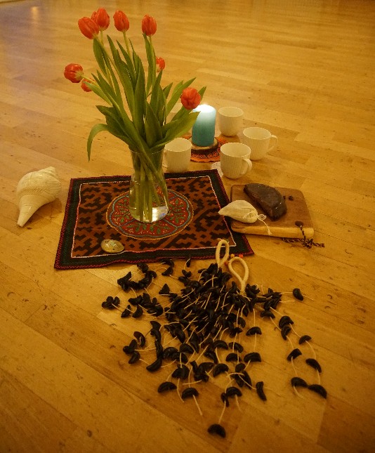 Jede Zeremonie ist anders, da sie doch wesentlich von den Intentionen der TeilnehmerInnen geleitet wird. Unterstützend haben sich monochrome Klänge, Rhythmen und Körperarbeit bewährt.